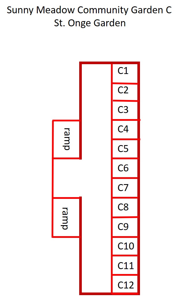 - Garden C, also known as the St. Onge Garden, has 12 raised-bed plots for gardeners with limited mobility, approximately 40 sq ft (5' x 8'). Fee: $10/year. Seniors and those with a disability have priority for Garden C plots until June 1. Garden C Map