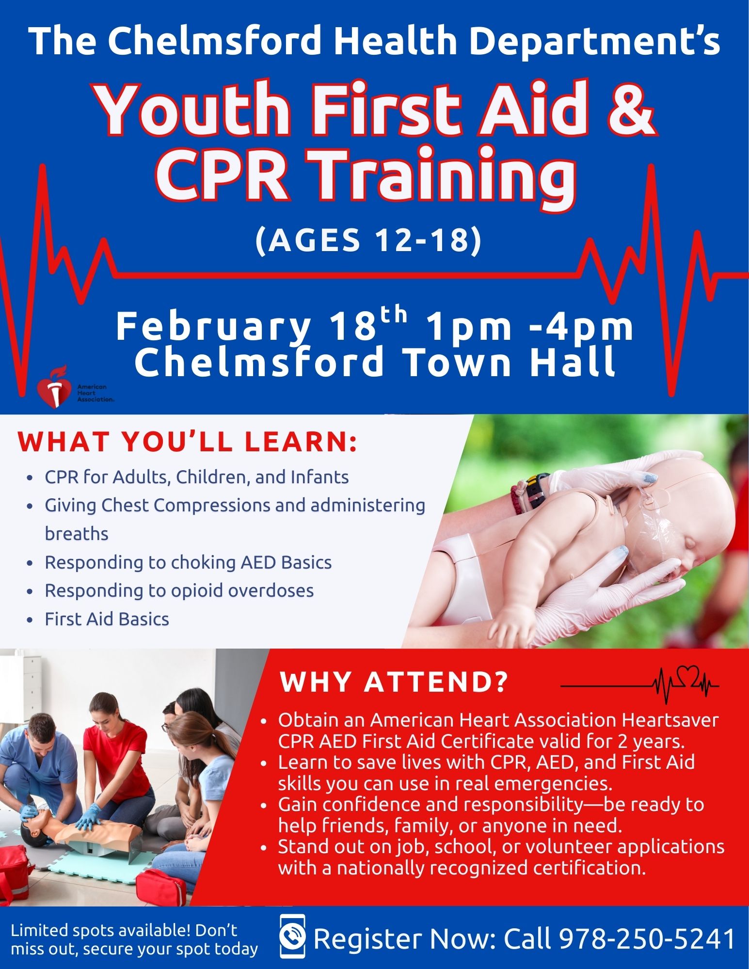 This program reflects the Chelmsford Health Department’s commitment to community safety, preparedness, and youth empowerment — because lifesaving skills are skills for life.