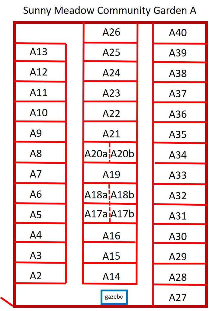 - Garden A is located nearest the greenhouses. Garden A has 41 plots, approximately 450 sq ft (15’ x 30’). Fee: $50/year ($25/year for half-plot). Garden A Map